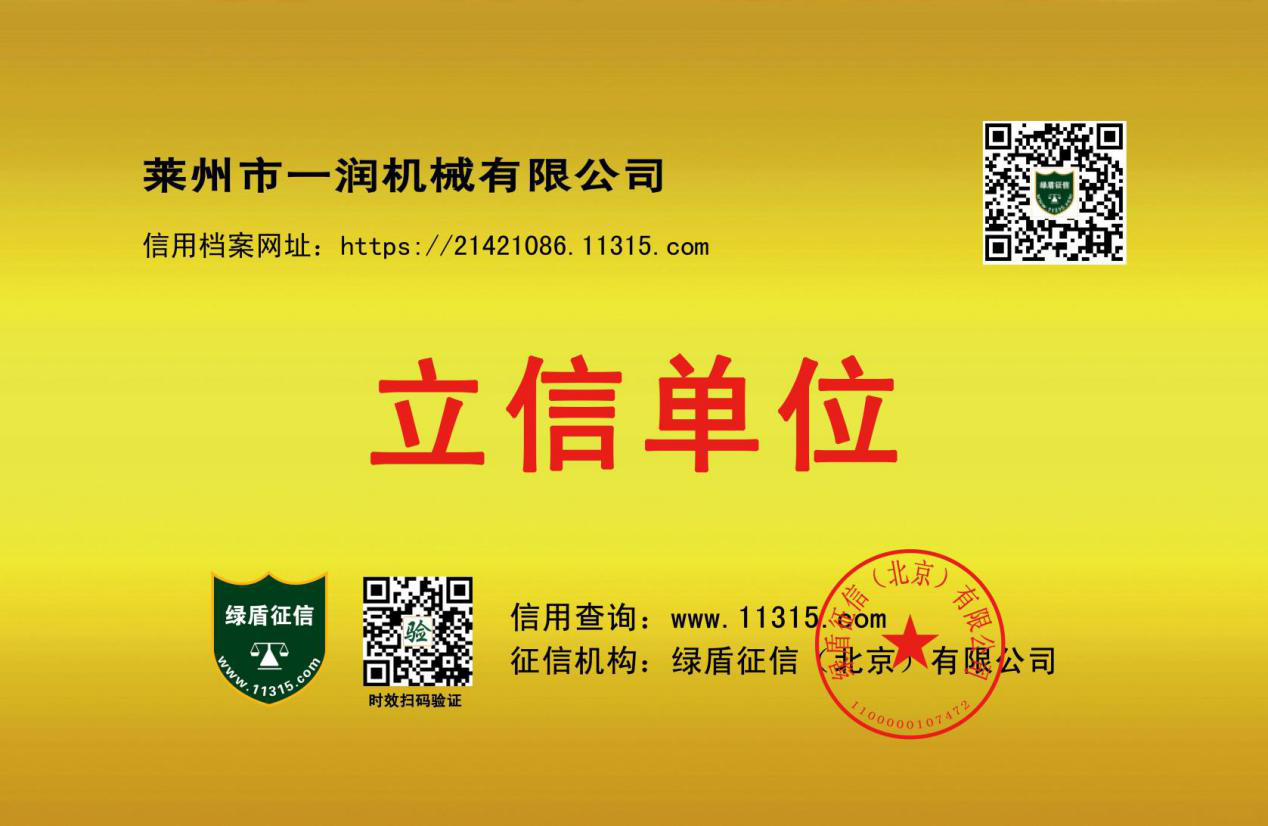 一潤機(jī)械公司自成立以來,堅持以“誠信做人、踏實干事”為經(jīng)營理念。誠于心、諾于行,以工匠精神打造每一個產(chǎn)品,竭盡全力履行對客戶的承諾,完成客戶的委托,做到把優(yōu)質(zhì)的產(chǎn)品、快速交到客戶手上。